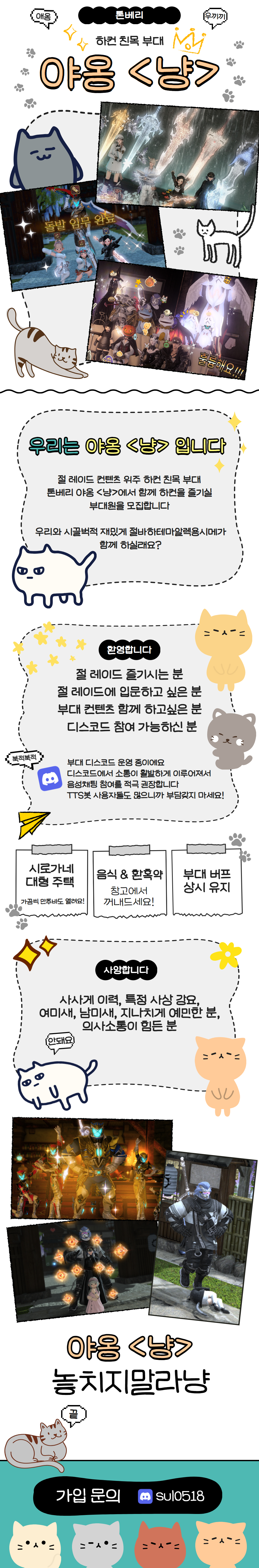 | 18441 | [톤베리] 야옹《냥》에서 같이 하컨즐길 부대원 모집합니다. (0) Picture 로그 | 24-12-13 | 2606 | 0 |