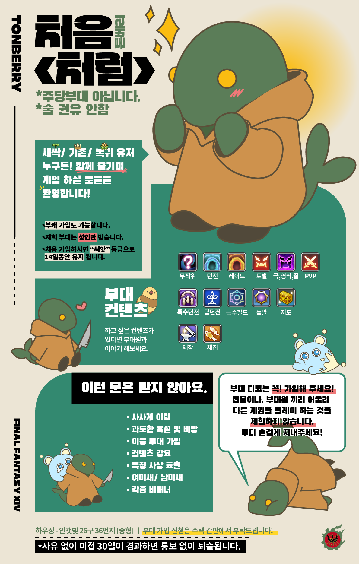 | 19065 | [톤베리] 처음 <처럼> 부대에서 부대원을 모집합니다!!! (0) Picture 라이현 | 25-02-18 | 2243 | 0 |