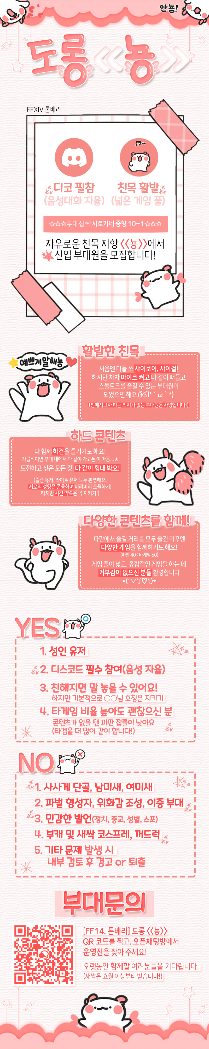 | 19943 | [톤베리] 따뜻한 친목 지향 <<뇽>>에서 신입 부대원을 모집합니다! (1) Picture 연서운 | 25-06-16 | 2730 | 0 |