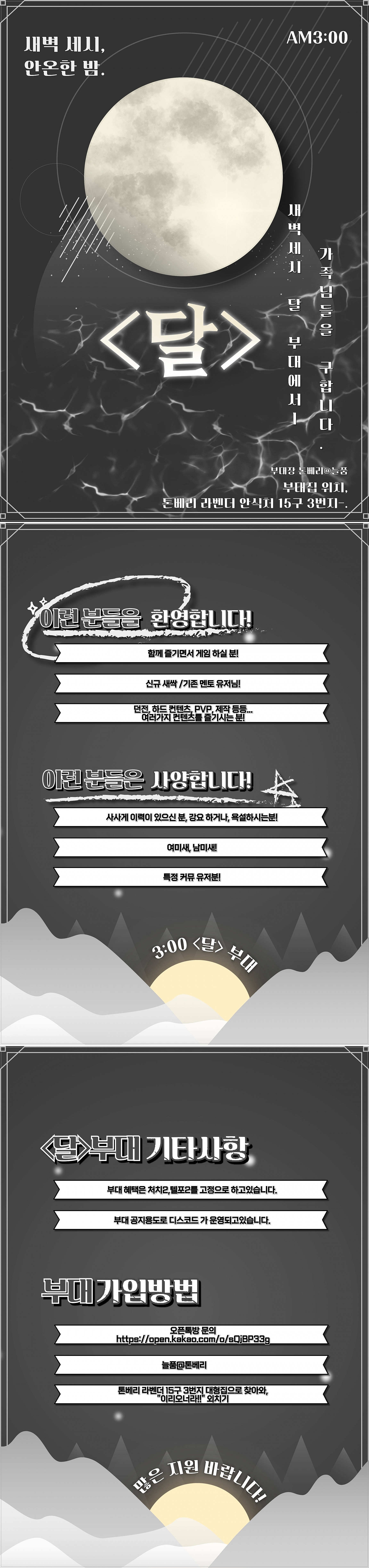 | 20737 | [펜리르] 샛별<<별빛>>부대에서 부대원을 모집중입니다 ~* (0) Picture mose*** | 25-11-01 | 364 | 0 |