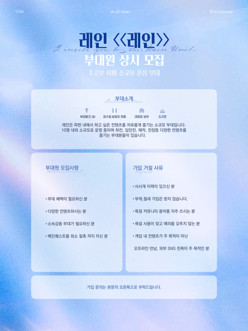 [펜리르]자유부대 스프라우트<싹>부대원 모집합니다!