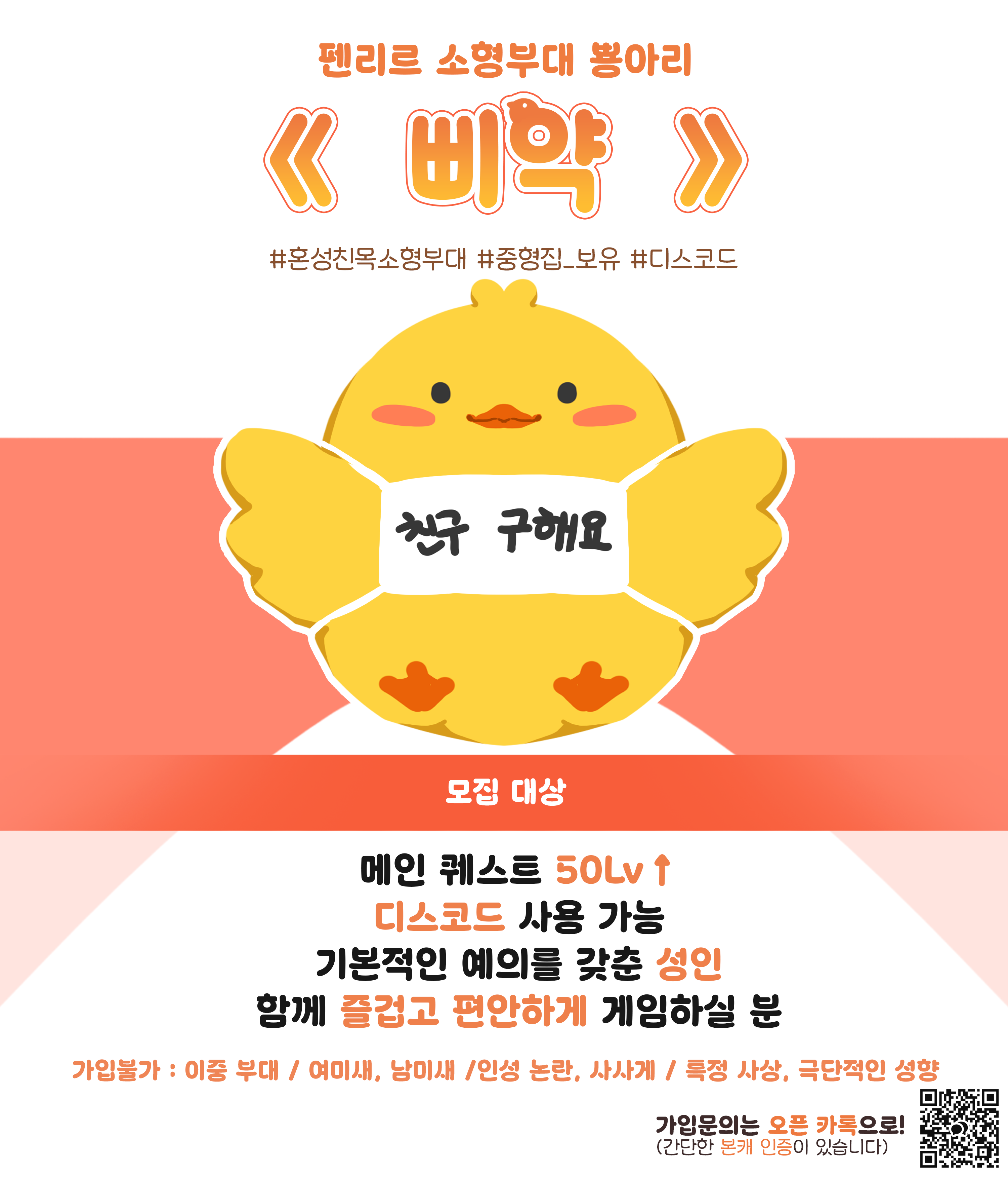 | 21592 | [펜리르] 소규모 친목부대 은은한 달<빛>에서 부대원 모집합니다! (1) Picture 달엘 | 26-04-10 | 157 | 0 |