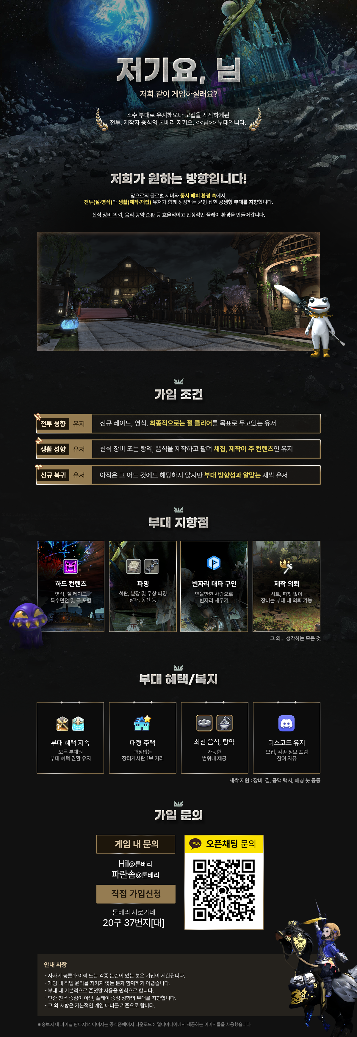 | 21604 | [펜리르] 혼성 친목부대 은은한 달<빛>에서 부대원 모집합니다! (1) New Picture 달엘 | 26-04-13 | 74 | 0 |