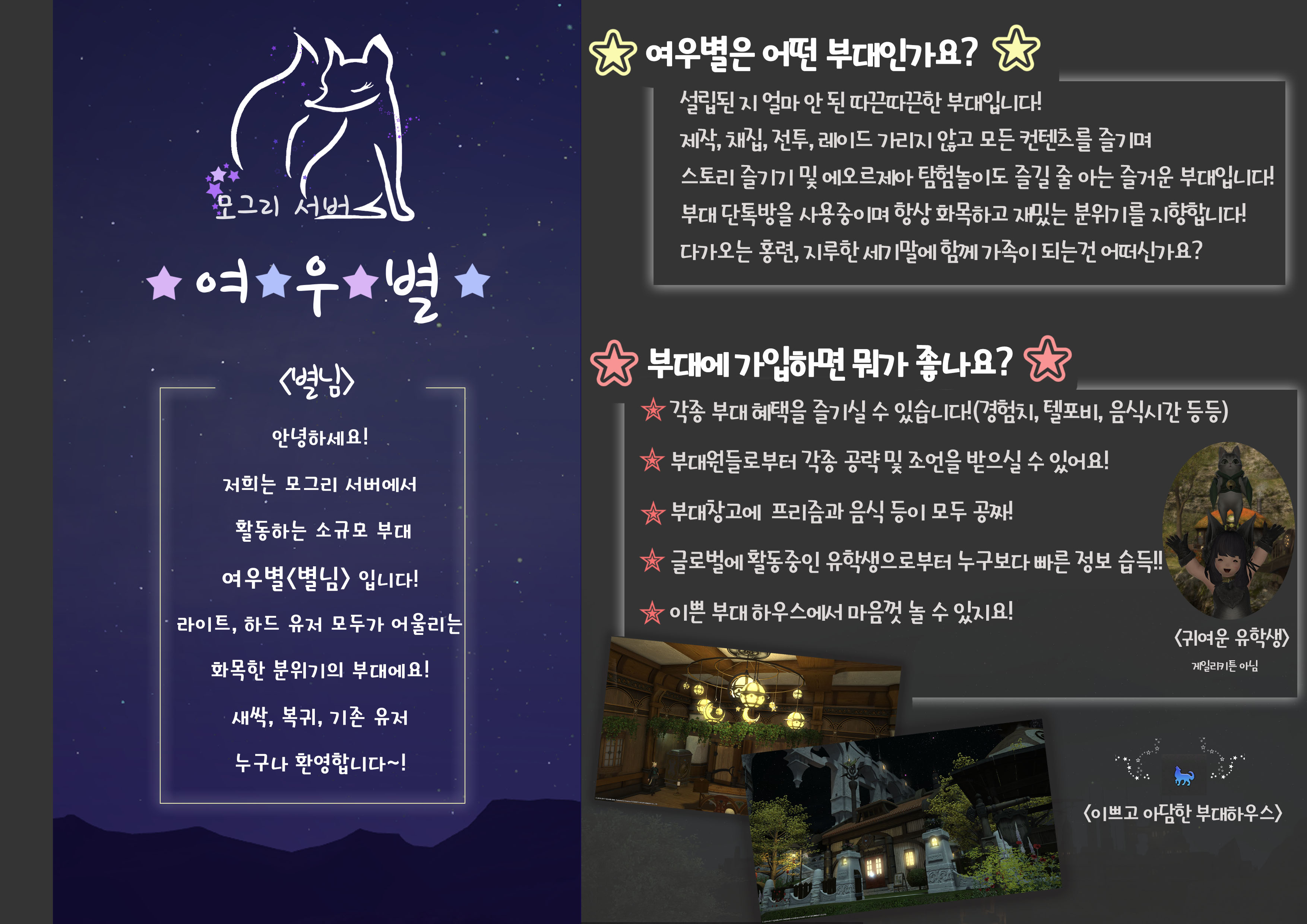 | 7414 | 여우별<별님>에서 부대원을 모집합니다! (1) Picture 너울 | 17-11-23 | 1427 | 0 |