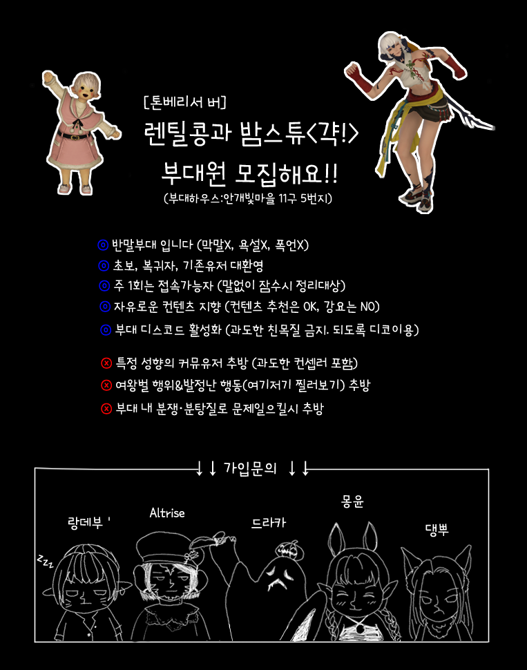 | 9616 | 톤베리 1588《형》에서 부대원 모집합니다! (0) Picture tldh**** | 20-07-31 | 9941 | 0 |