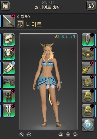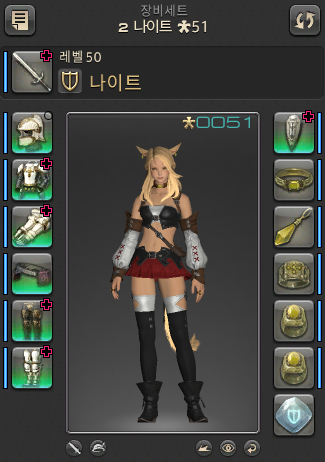미코테 종족으로 게임을 시작할 때 받는 종족 기본 복장을 나이트 고양이의 장비 위에 덧씌우면