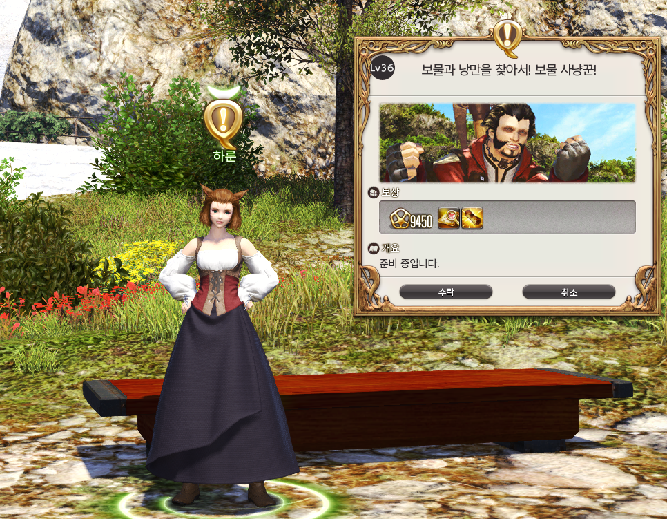 먼저 보물 찾기를 하기 위해서는 퀘스트를 진행 해야 합니다.