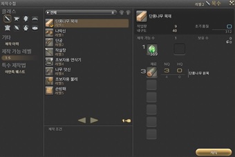 제작 수첩 제작 수첩창을 열면 제작 리스트를 통해 제작하고자 하는 제작품을 선택할 수 있습니다. 제작품을 선택하면 우측에 제작하기 위해 필요한 재료를 확인할 수 있으며, 재료 아이템을 소지하고 있을 경우 아이템 제작을 실행할 수 있습니다. |