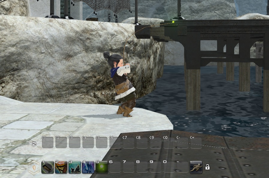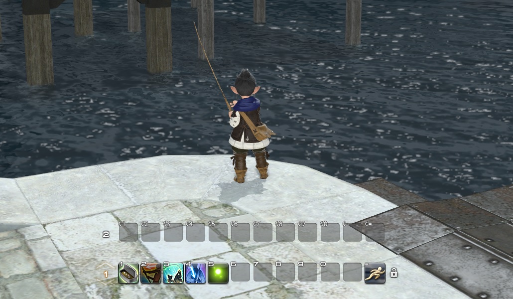 > 낚싯대 던지기 < 미끼를 선택했으면, [낚싯대 던지기] 스킬을 사용하면해당 지역에서 낚시를 시작합니다. 채집 스킬 중 [중단] 스킬을 사용하면 낚시를 중단합니다. |