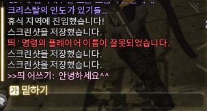 위의 그림과 같이 기본적인 귓속말을 진행 시 캐릭터명을 찾을 수 없는
