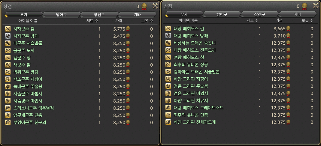 원하는 직업의 무기를 선택하여 수령이 가능 합니다.*