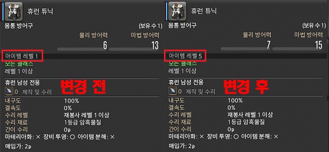 - 종족 기본 의상의 아이템 레벨을 5레벨로 변경