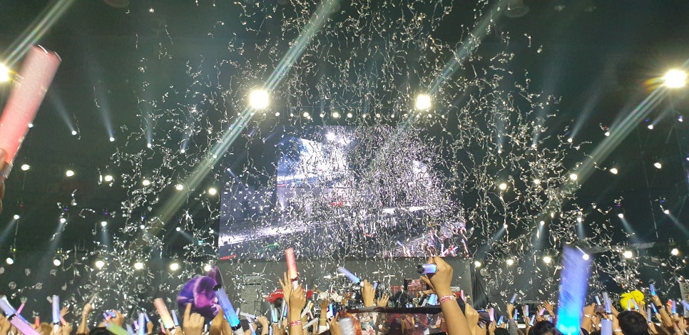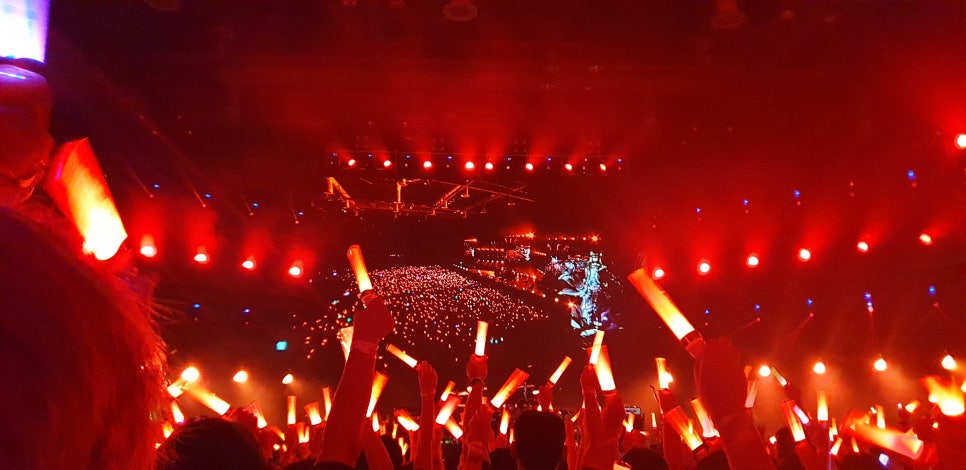 응원봉 색맞춰서 응원하는 데 너무 대단했고 멋있었습니다.