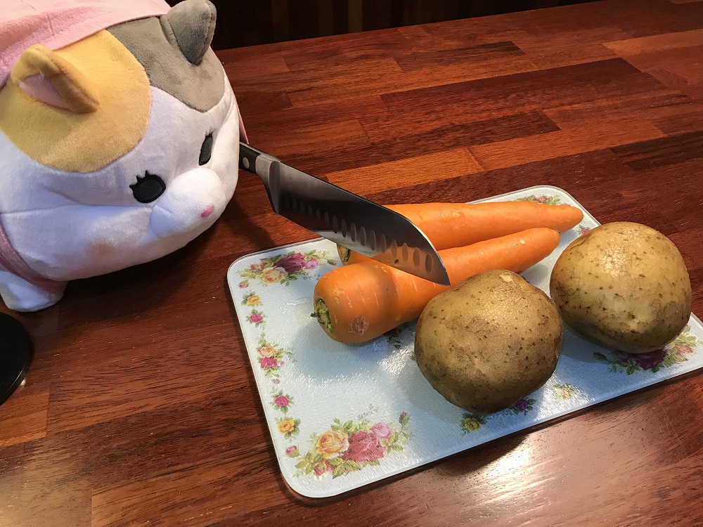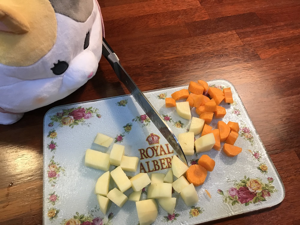 뚱 : 먼져 준비해둔 커르다스 당근과 포포토를 무자비하게 썰어줍니댜....!!!! 흐흐흫흐흫(칼스윽