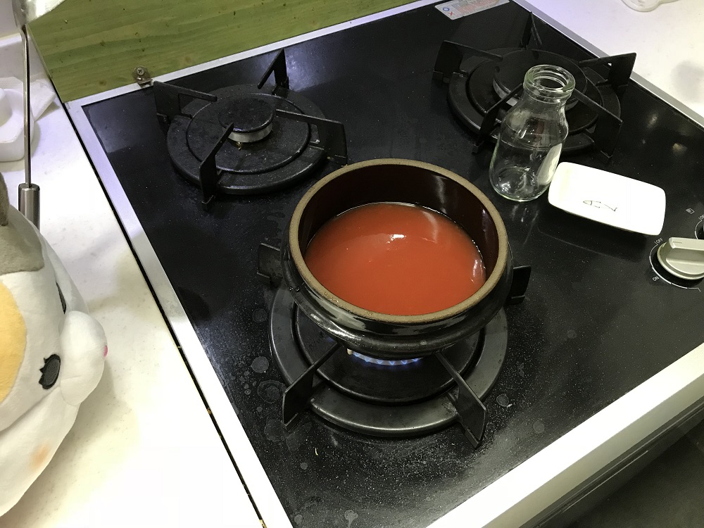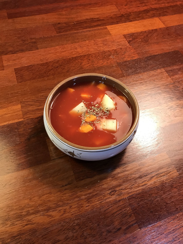 이 야채 수프는 차갑게 만든 다음 뜨겁게 달군 돌을 넣어 데워진다.