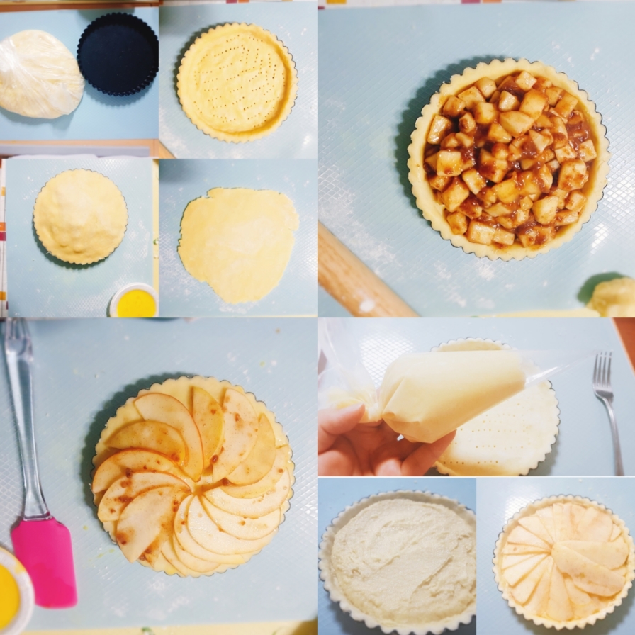 두번째는 아몬드반죽을 하곤 그위에 계피와 설탕을 무쳐준 사과를 올리는 방법이에요!