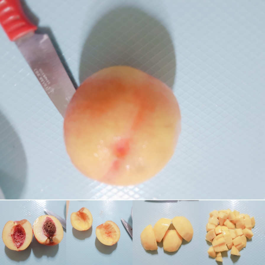 우선 복숭아의 가운데를 빙돌려 잘라주세요
