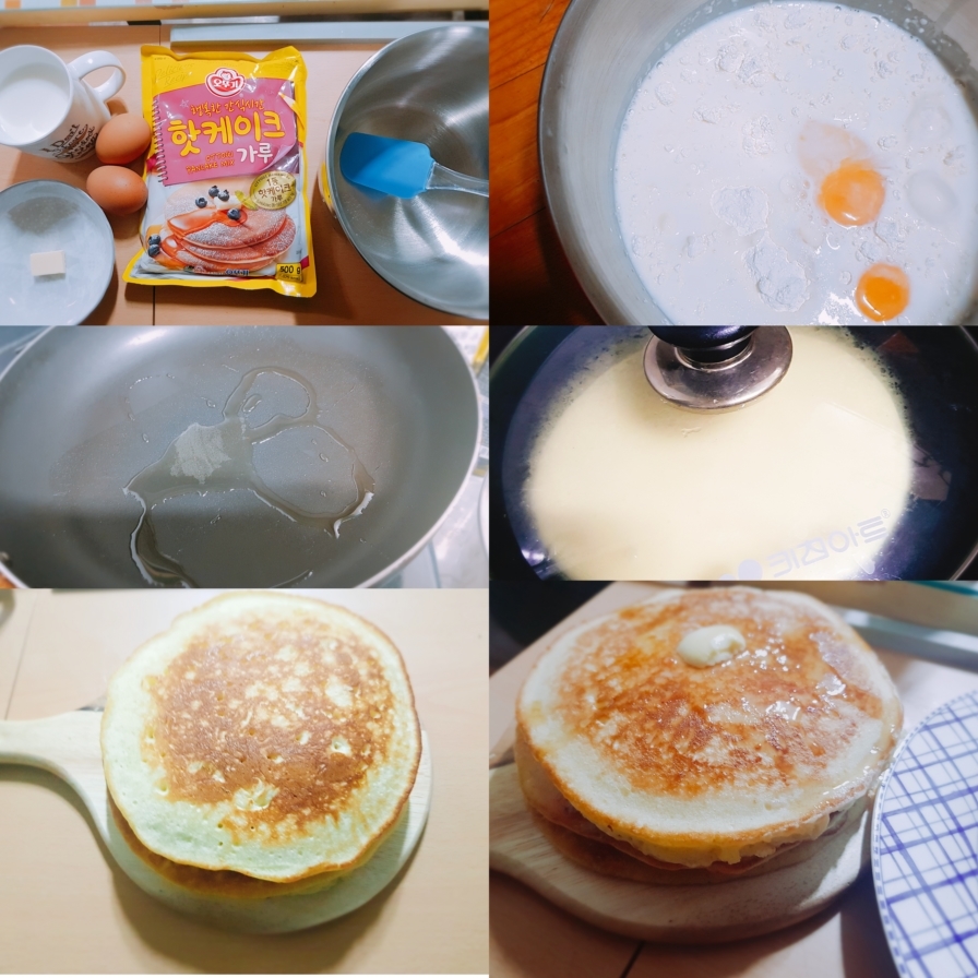 재료:핫케이크가루믹스,우유,계란2개,버터,시럽,딸기잼