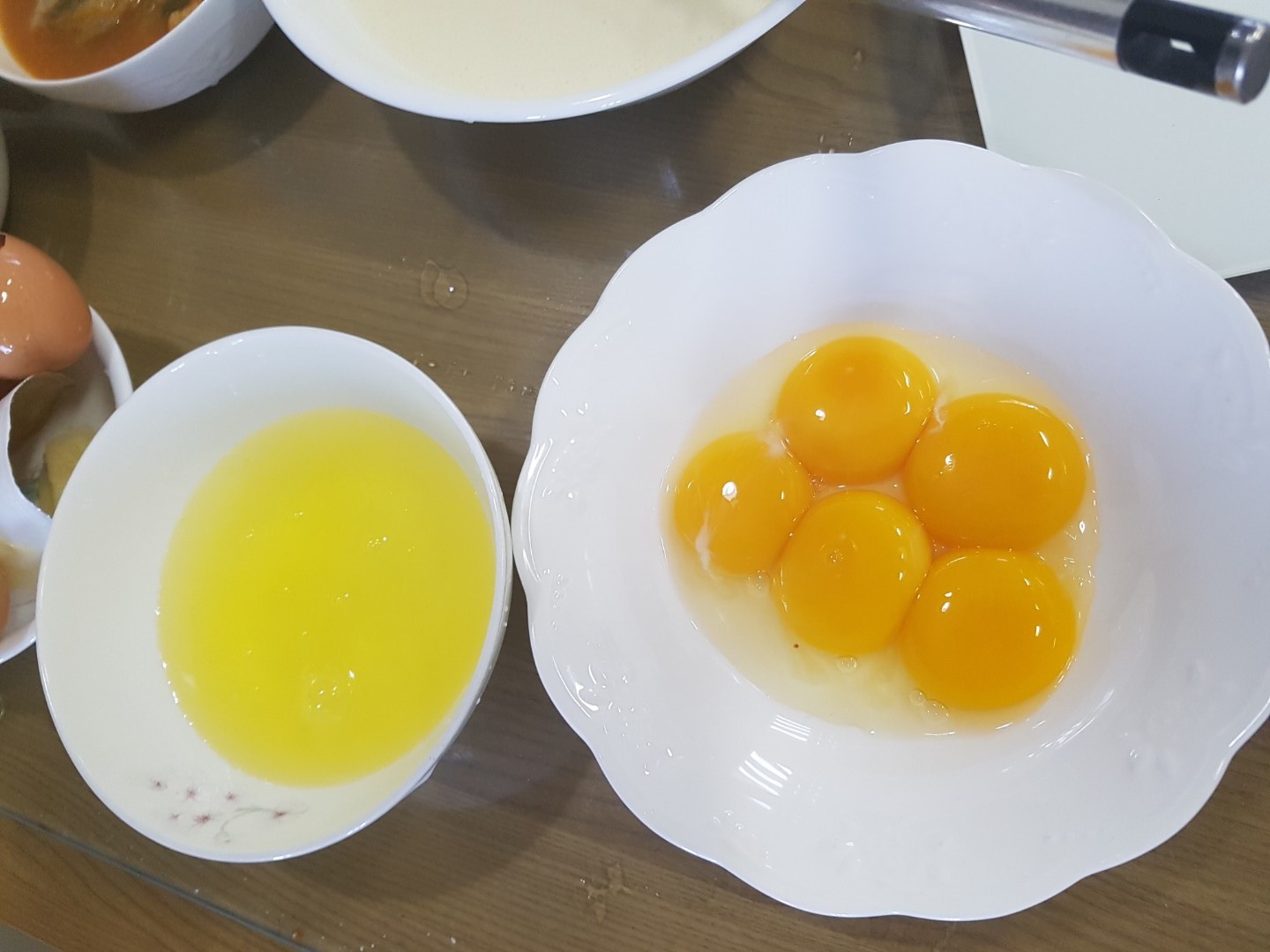 8. 계란 5알 흰자, 노른자 분리! 역시 명치에 손이 없어 과정샷은 없습니다.