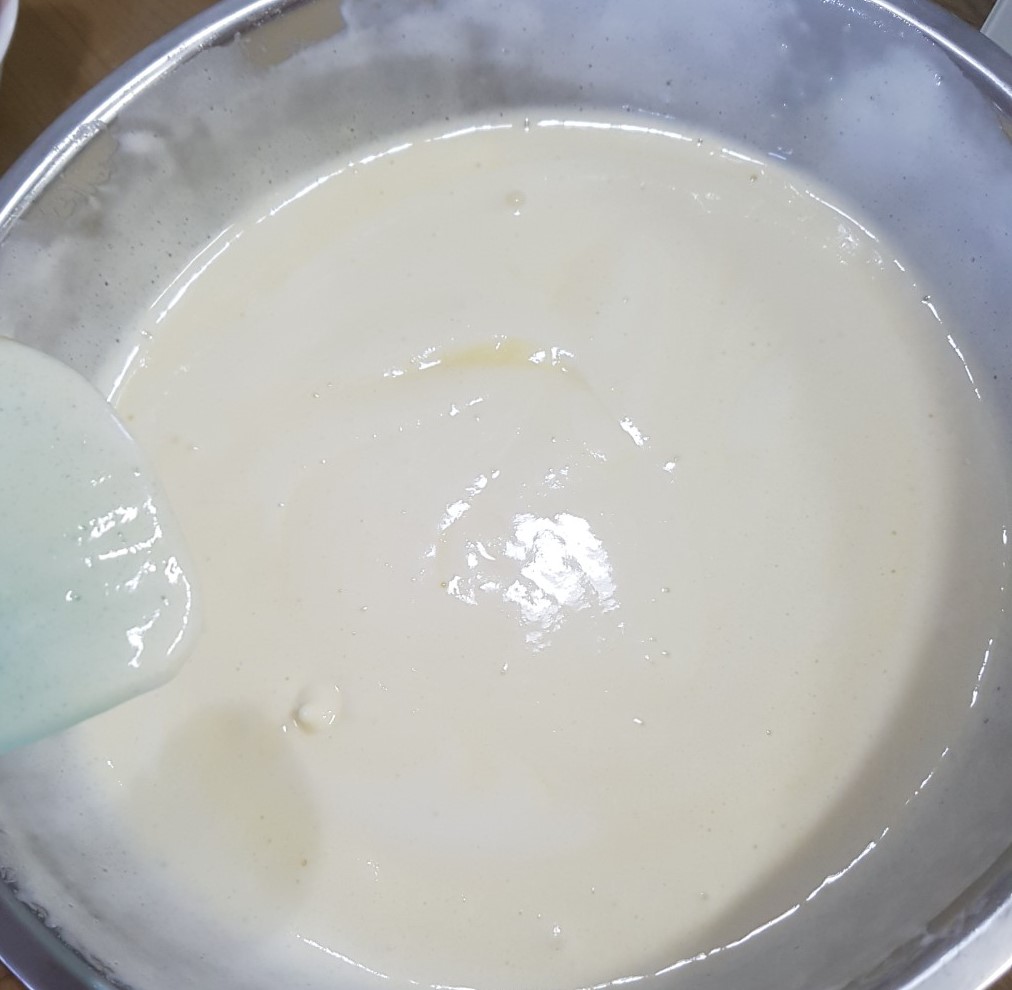베이킹용 주걱이 없는 저는 밥주걱으로 갓 지은 밥 뒤집듯 저어줍니다.