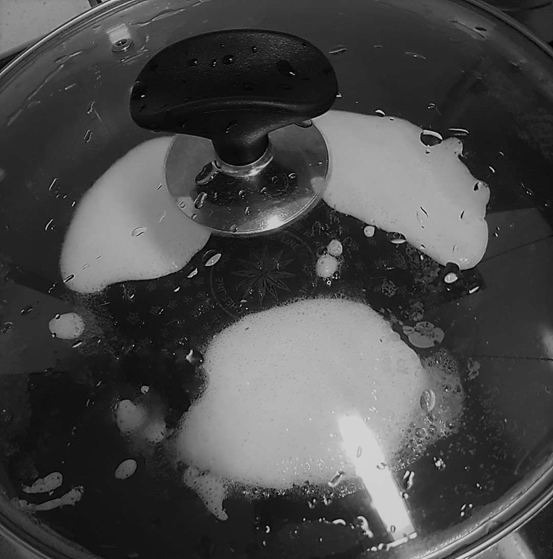흰자는 냉동실에 넣어뒀던 철그릇을 꺼내 붓습니다..
