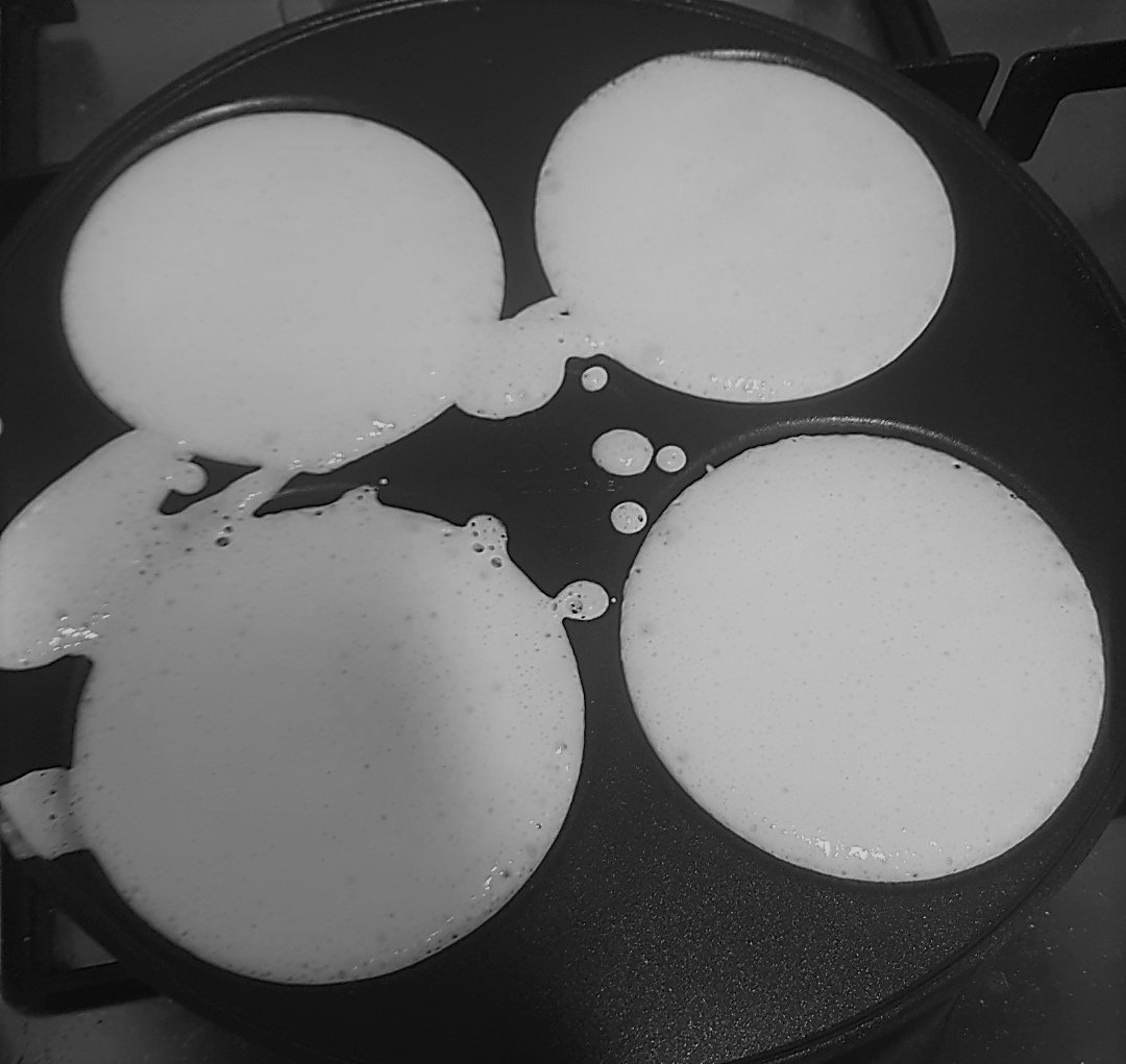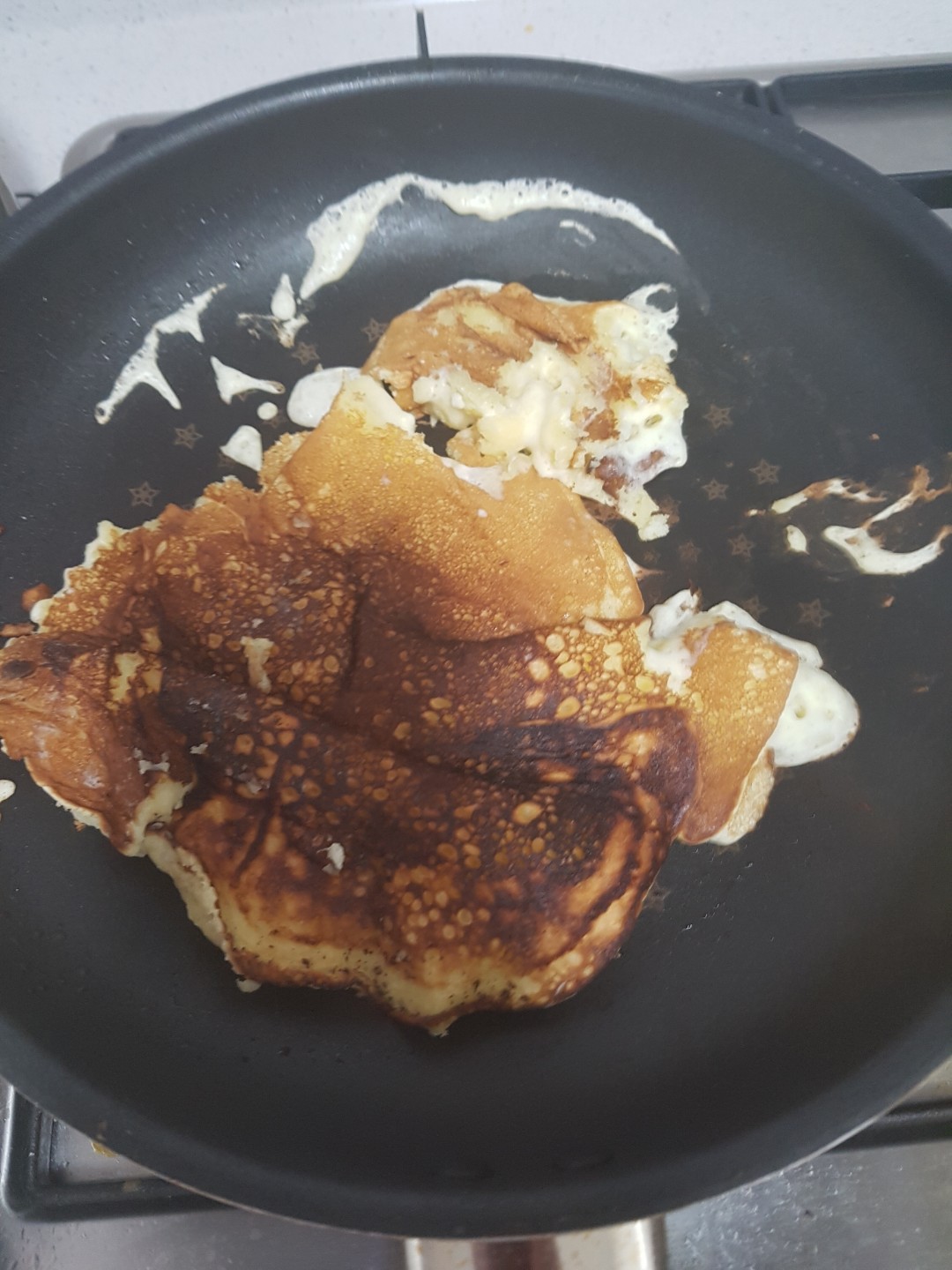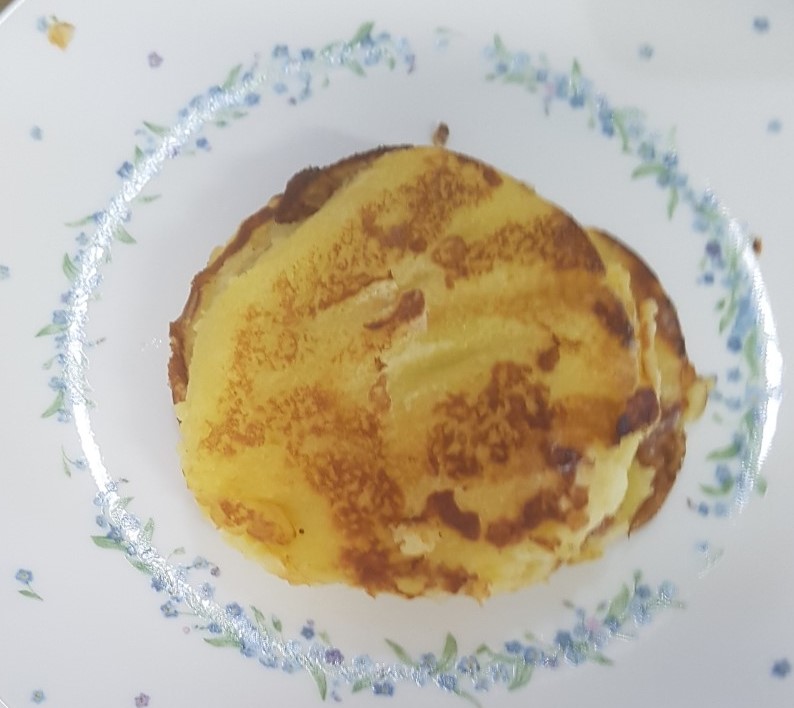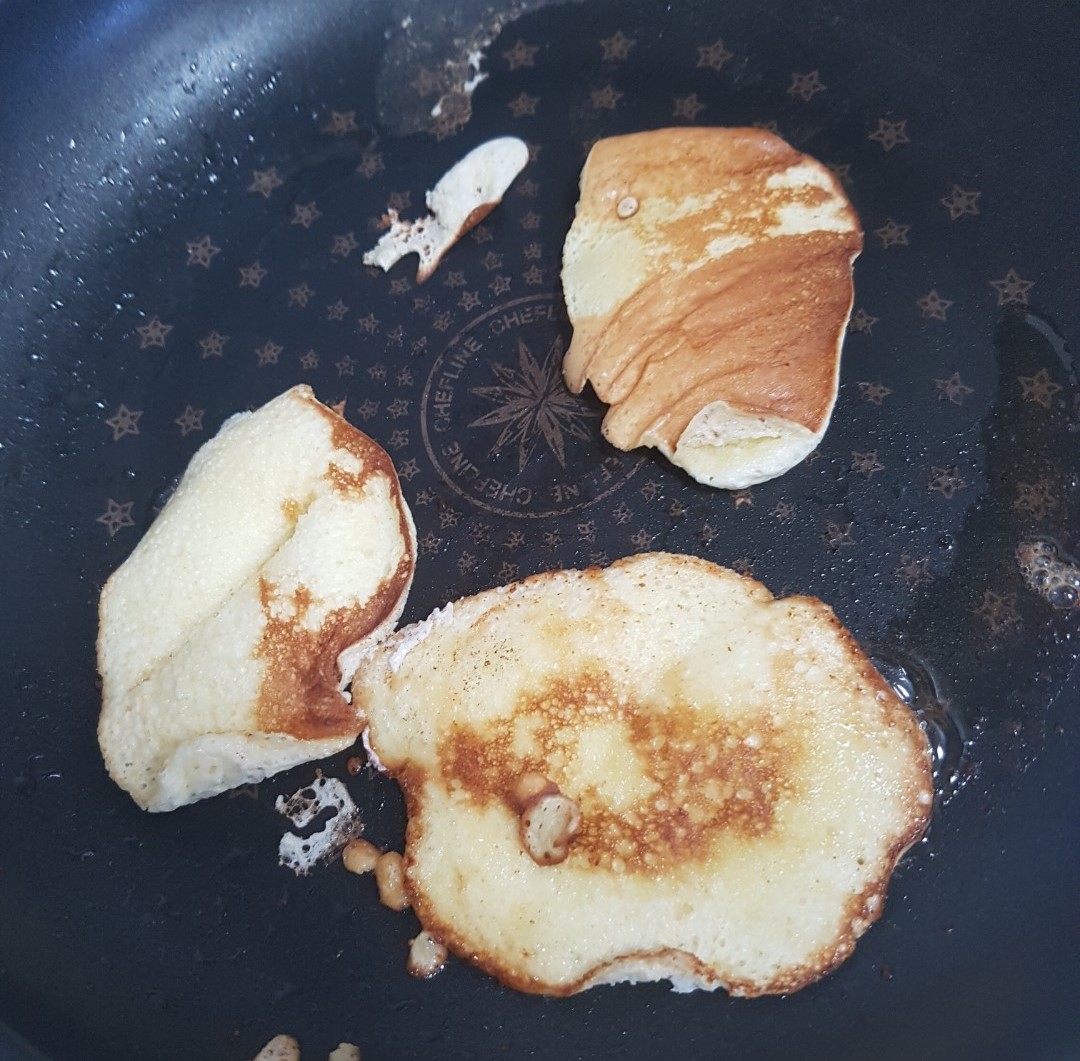 15. 동그란 포포토 팬케이크 3장. (한장은 탔습니다.)