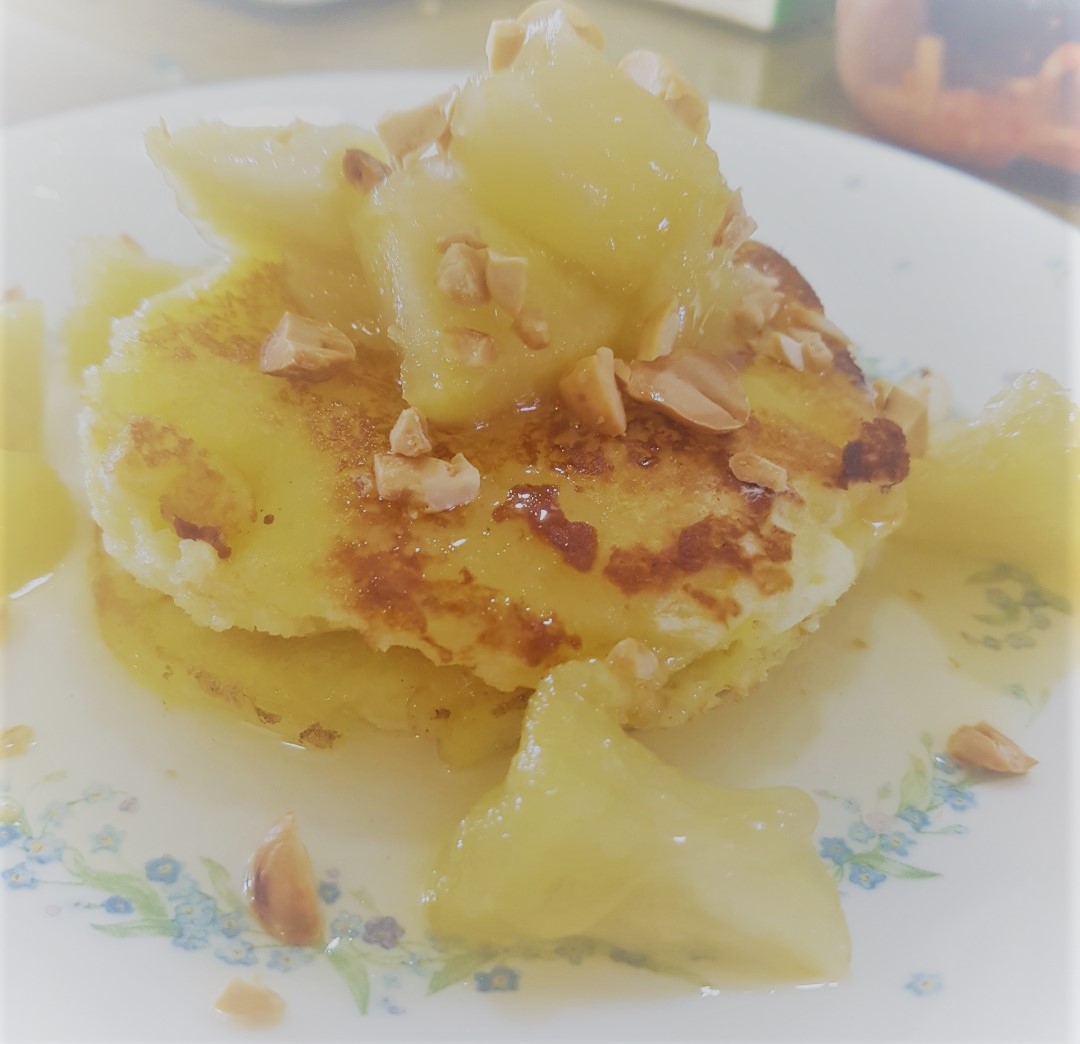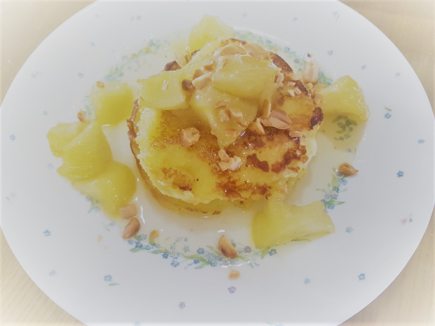 사과 조림을 곁들여 먹는 팬케이크인 만큼