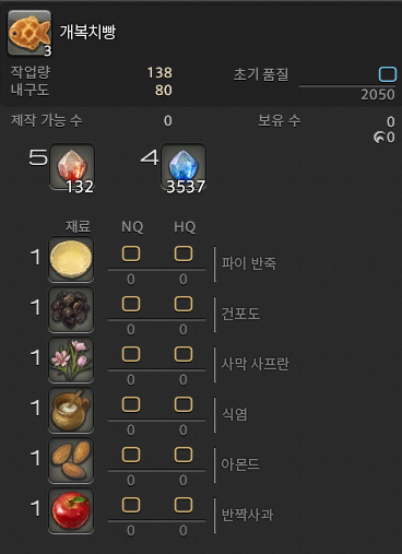 게임내 레시피에는 아몬드도 들어가서 준비는 했는데... 아몬드 싫어해서 빼버립니다.
