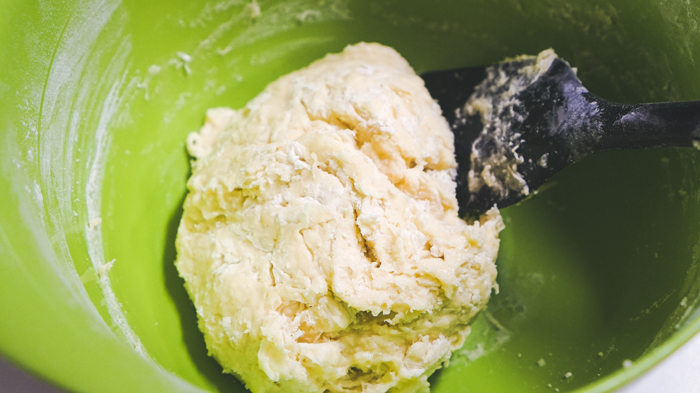 가루류가 매끈하게 잘 섞이도록 주걱으로 1~2분정도 반죽을 해줍니다.