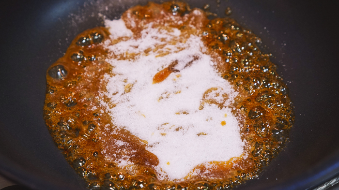 꿀+설탕 넣고 가열하다가 설탕 색이 갈색이 되면 사과를 넣어야하는데.......꿀색이 갈색이라 망했어요.