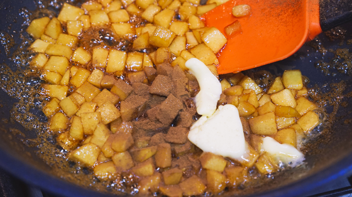적당히 졸아들면 계피가루+버터 넣고 좀 더 볶아줍니다. (계피가루랑 버터는 생략가능)