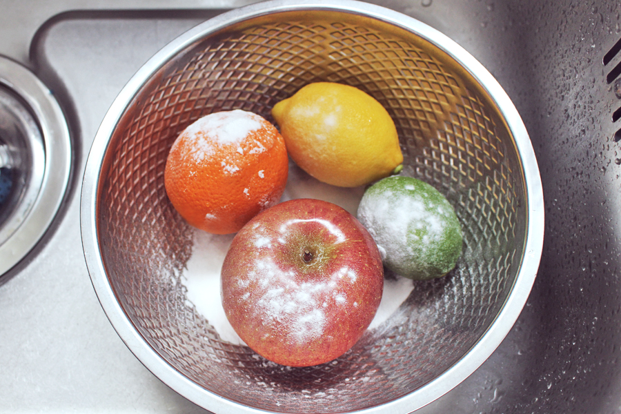 과일은 베이킹 소다를 이용해 빡빡 문질러 한 번 세척 해 줍니다.