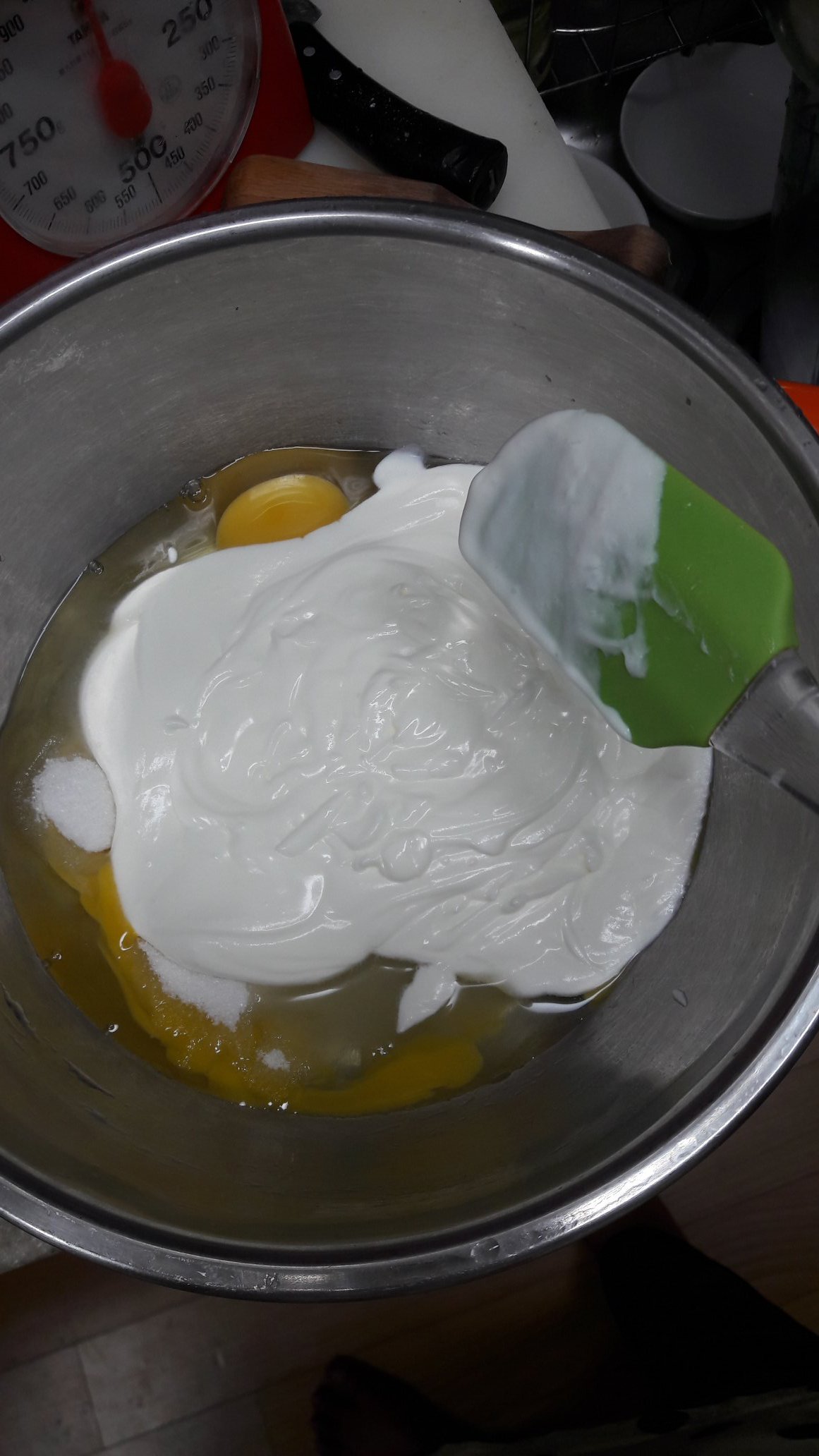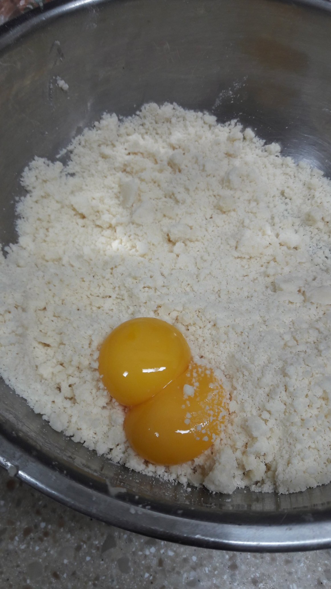 그다음은 노른자 두개를 넣고 반죽이 될때까지 열심히 치대어 줍니다!:3