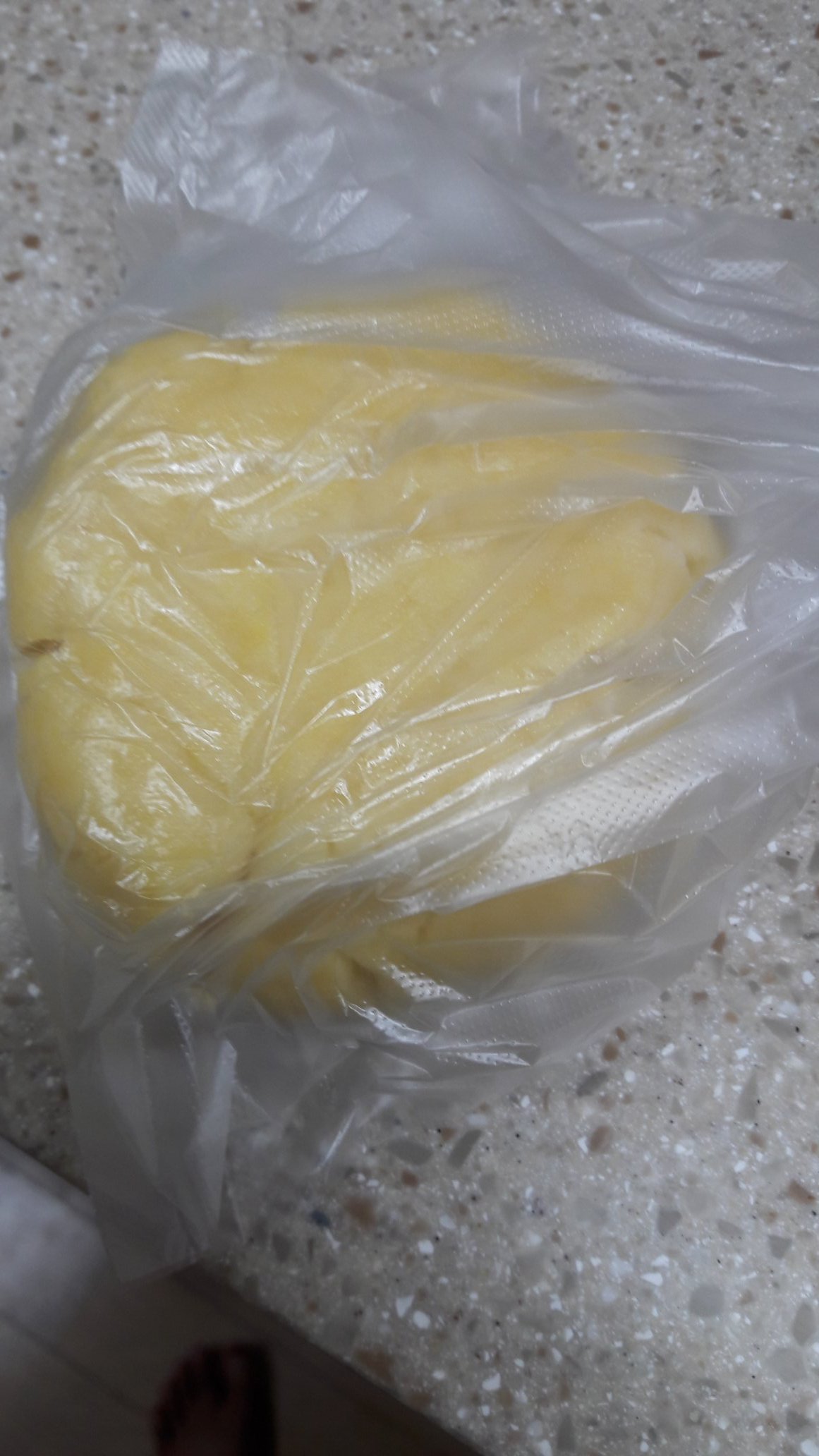 요건 둥글게 만든뒤에 조금 눌러서 비닐봉지에 넣고 냉장고에서 30분 휴지 시켜주세요