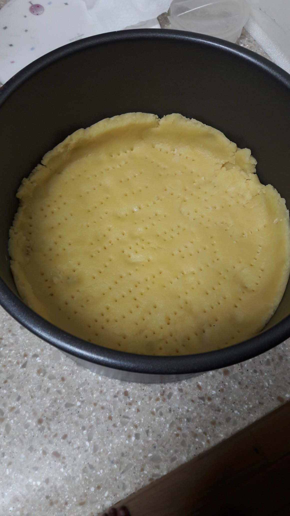 파이지 반죽을 얇게 밀었다면 파이틀(저는 파이틀이 없어서 케이크들로)에 넣고 포크로 구멍을 내줍니다