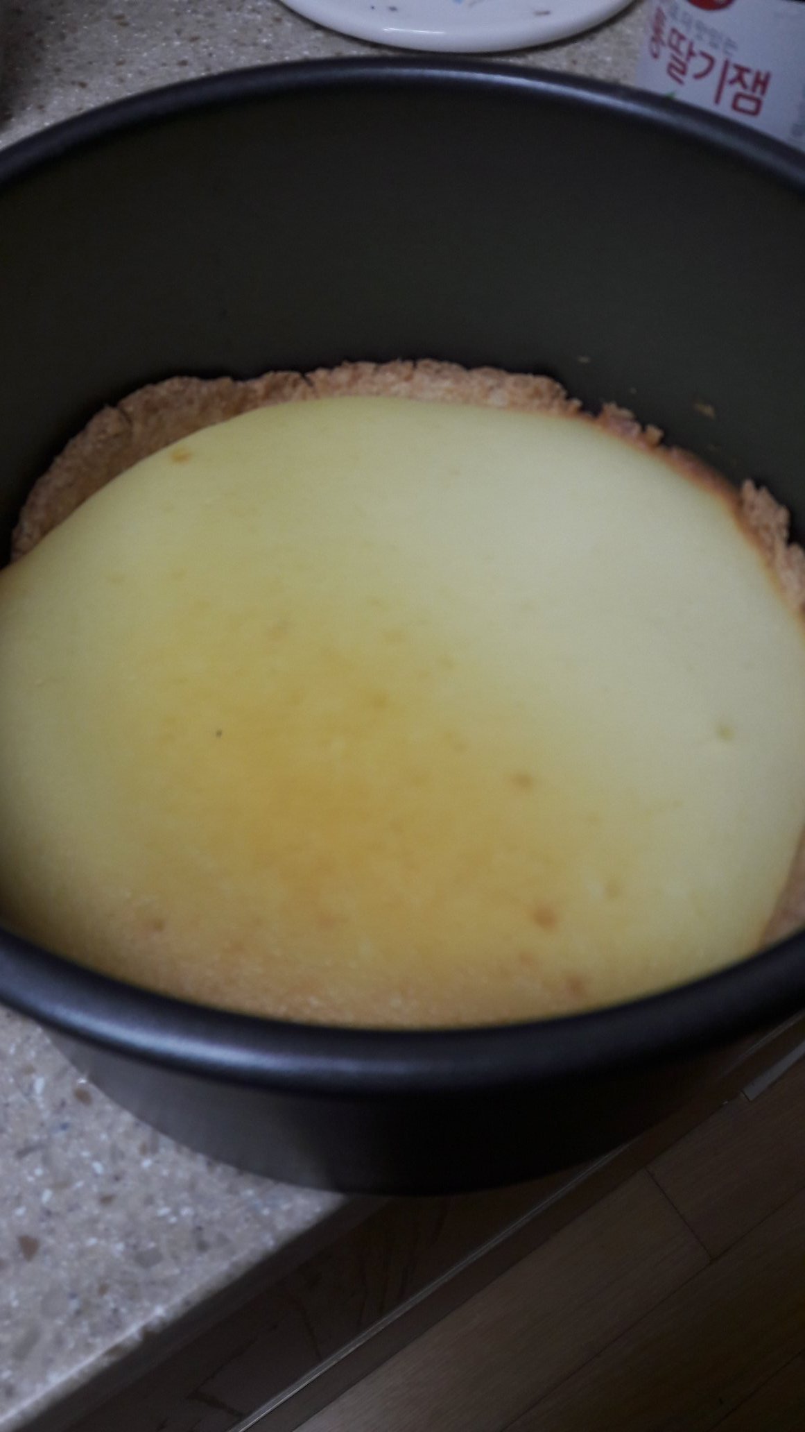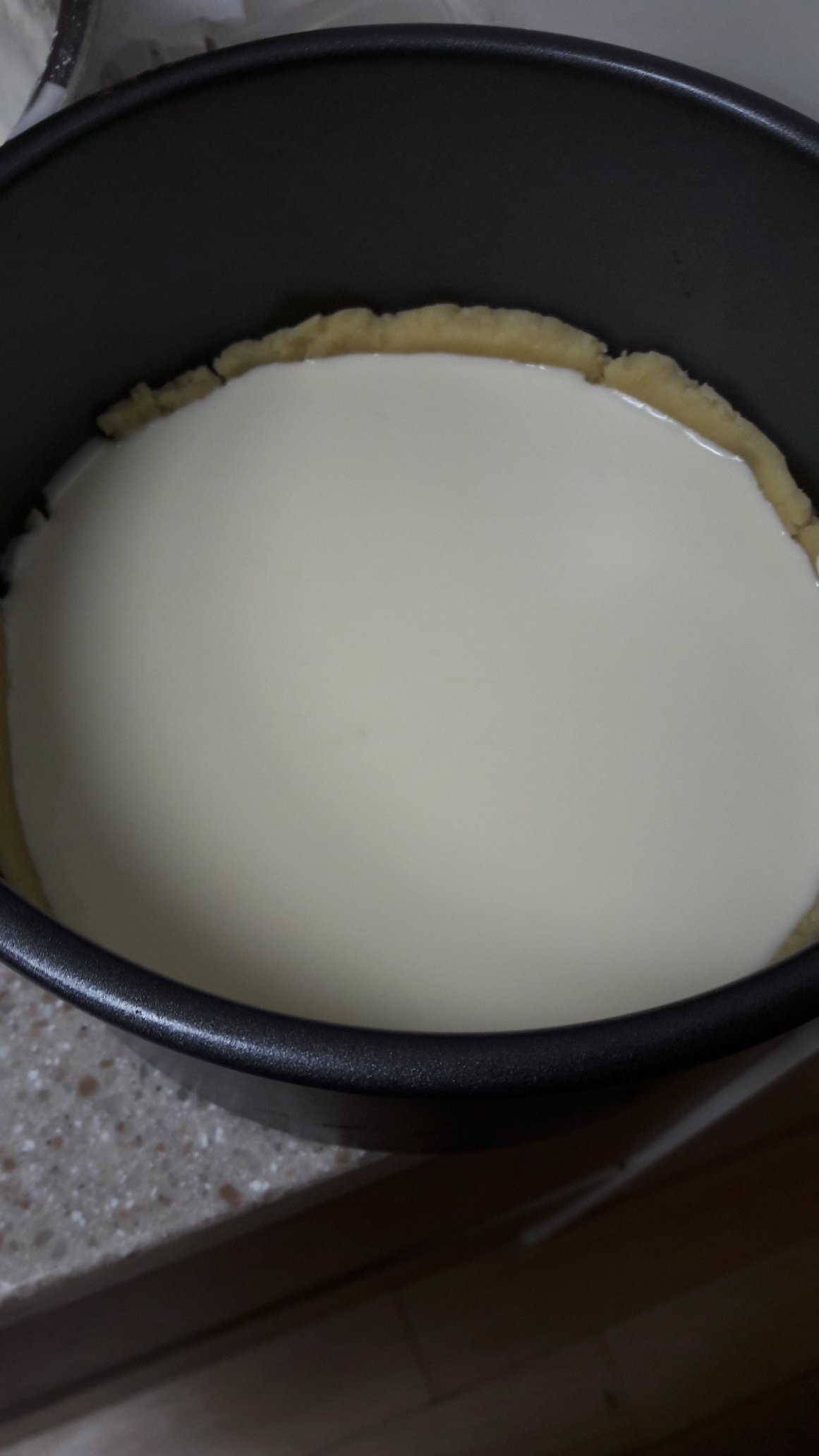 구멍을 다 냈다면 치즈케이크 필링 반죽을 부어줍니다