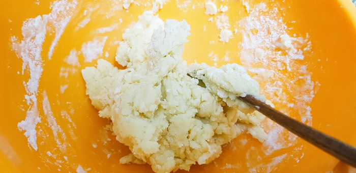 반죽이 완성되면 비닐봉투나 랩 등으로 싸서 냉장고에 30분 이상 휴지시킵니다.