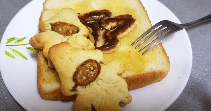 이대로 구워도 되고, 물샤드에 커피가루랑 설탕을 잘 녹인 뒤 얼굴에 부어준 뒤 구워도 됩니다.