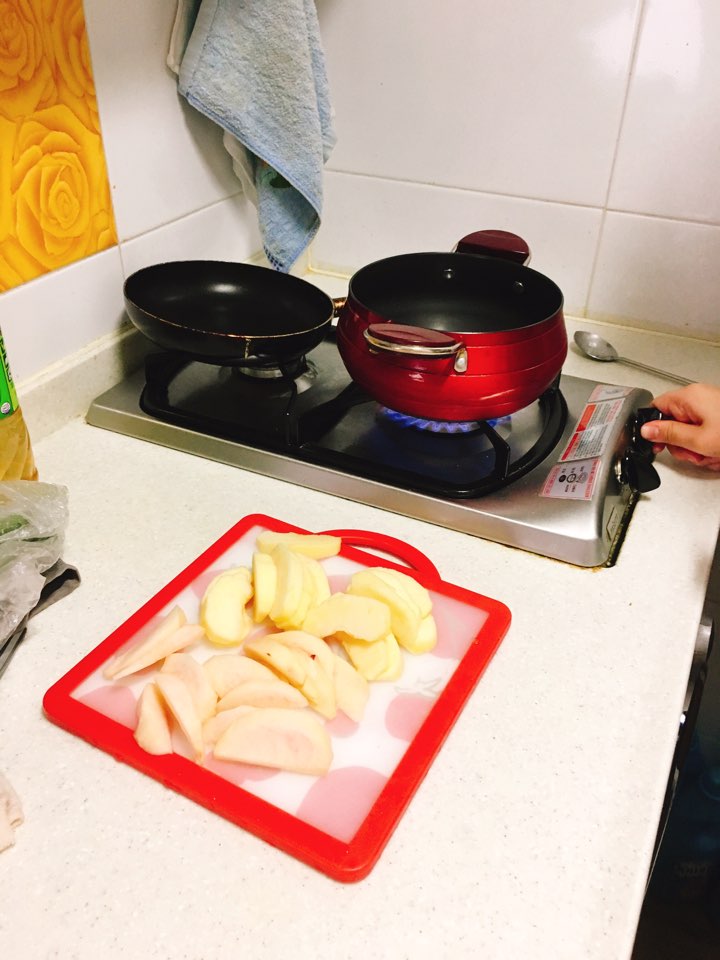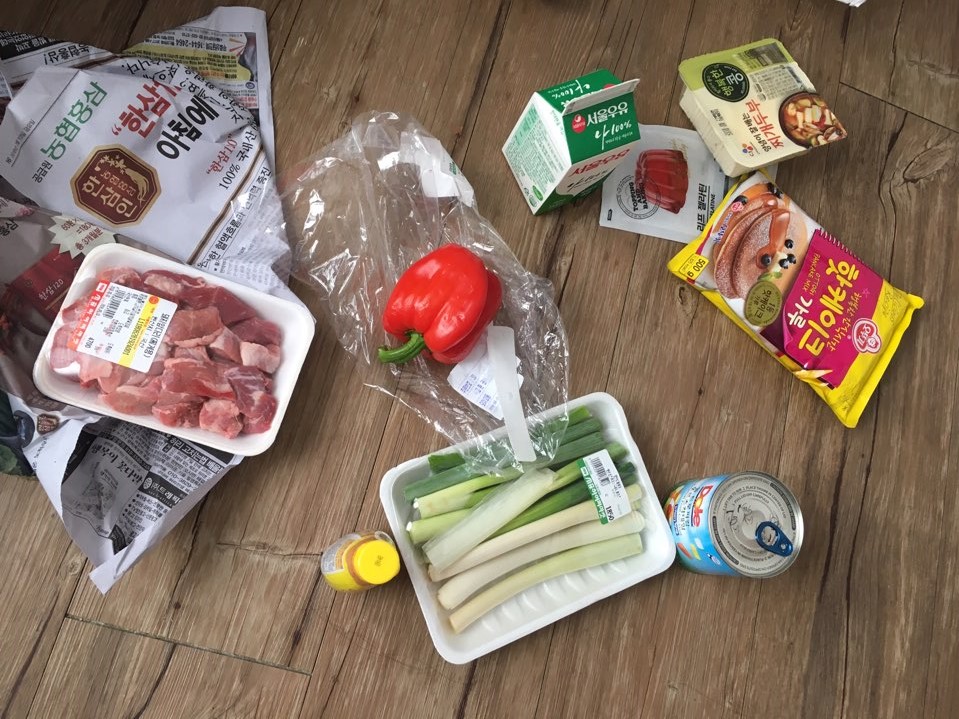 지인분 자취방에 있는 탁상이 재료를 다 올리기엔 부족한 나머지..