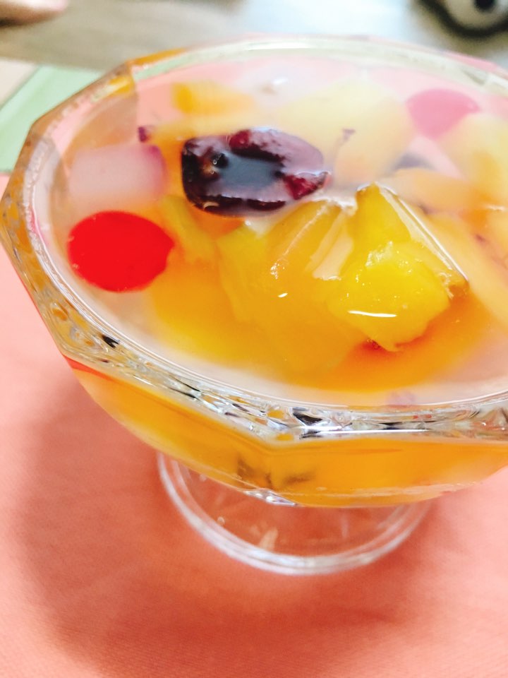 그리고... 과일을 알아서 잘 넣어줍니다... 저희는 이쁘게 만들고싶어서 한번 굳히고 다시 그 위에 과일을 얹어 굳히기로 했어요.