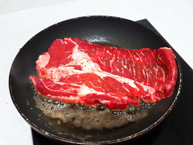 그리고 우리의 흐뀨 프라이팬을 뜨겁게 달구고 큰뿔염소 지방으로 코팅을 해줍시다
