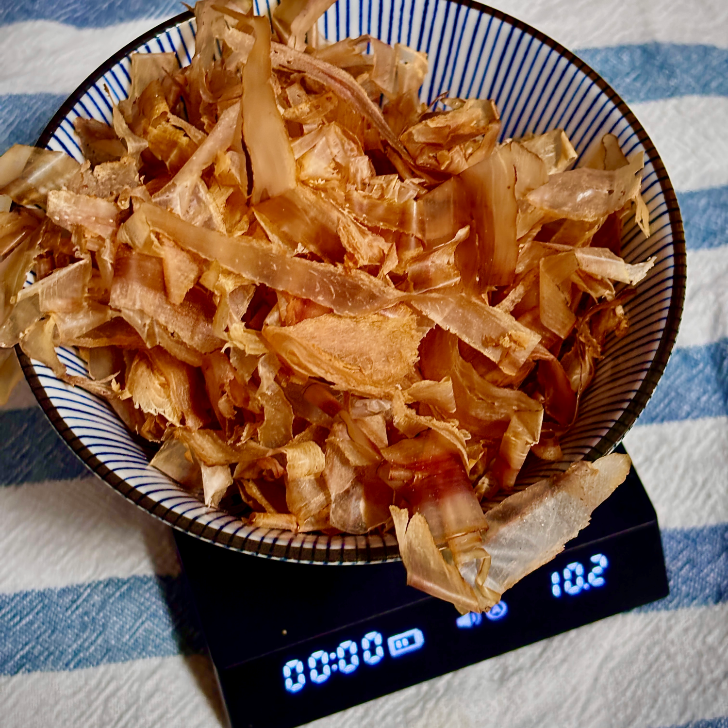 3. 가쓰오부시를 약 20g 정도 계량하여 덜어둡니다. 취향에 따라 더 넣으셔도 됩니다.