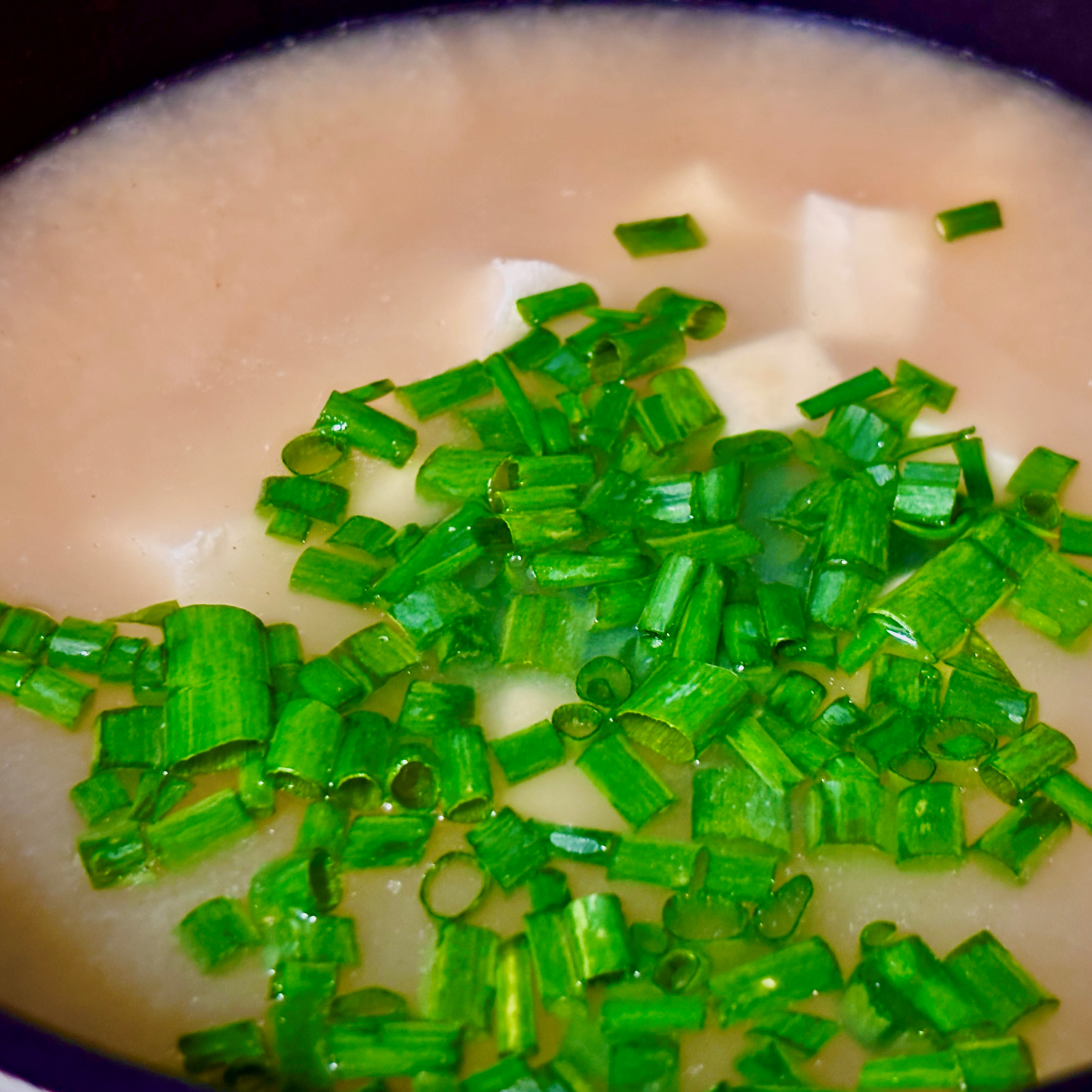 2. 맛국물(2번 육수)에 1.5큰술(밥숟가락 기준) 정도의 된장(코메미소)을 곱게 체에 내려 풀어줍니다.