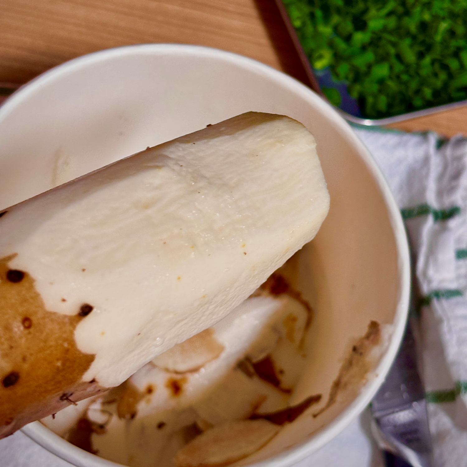 2. 키친타월 또는 거즈 등의 도구로 버섯의 표면과 갓을 잘 닦은 후, 갓과 기둥을 분리합니다. (생략 가능)