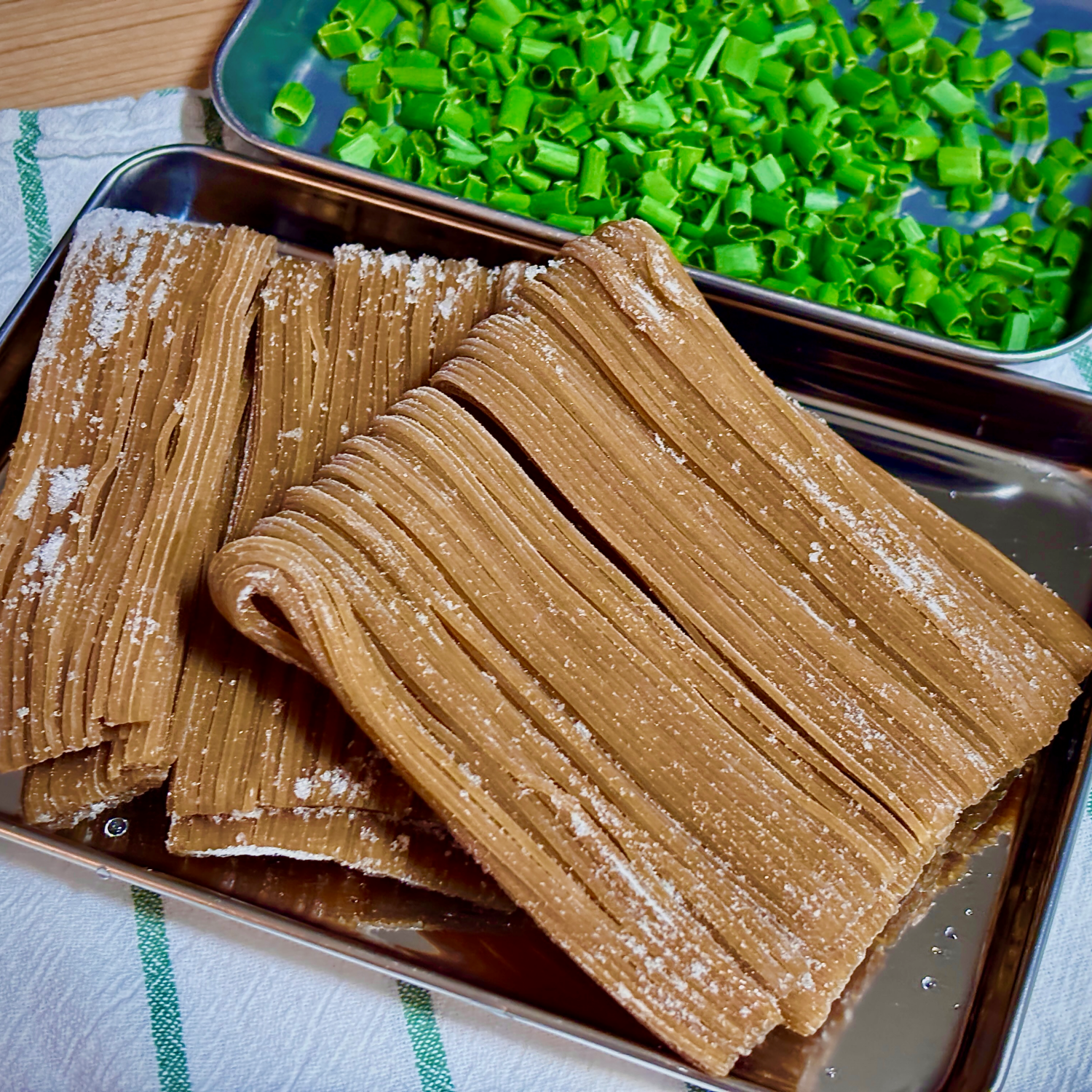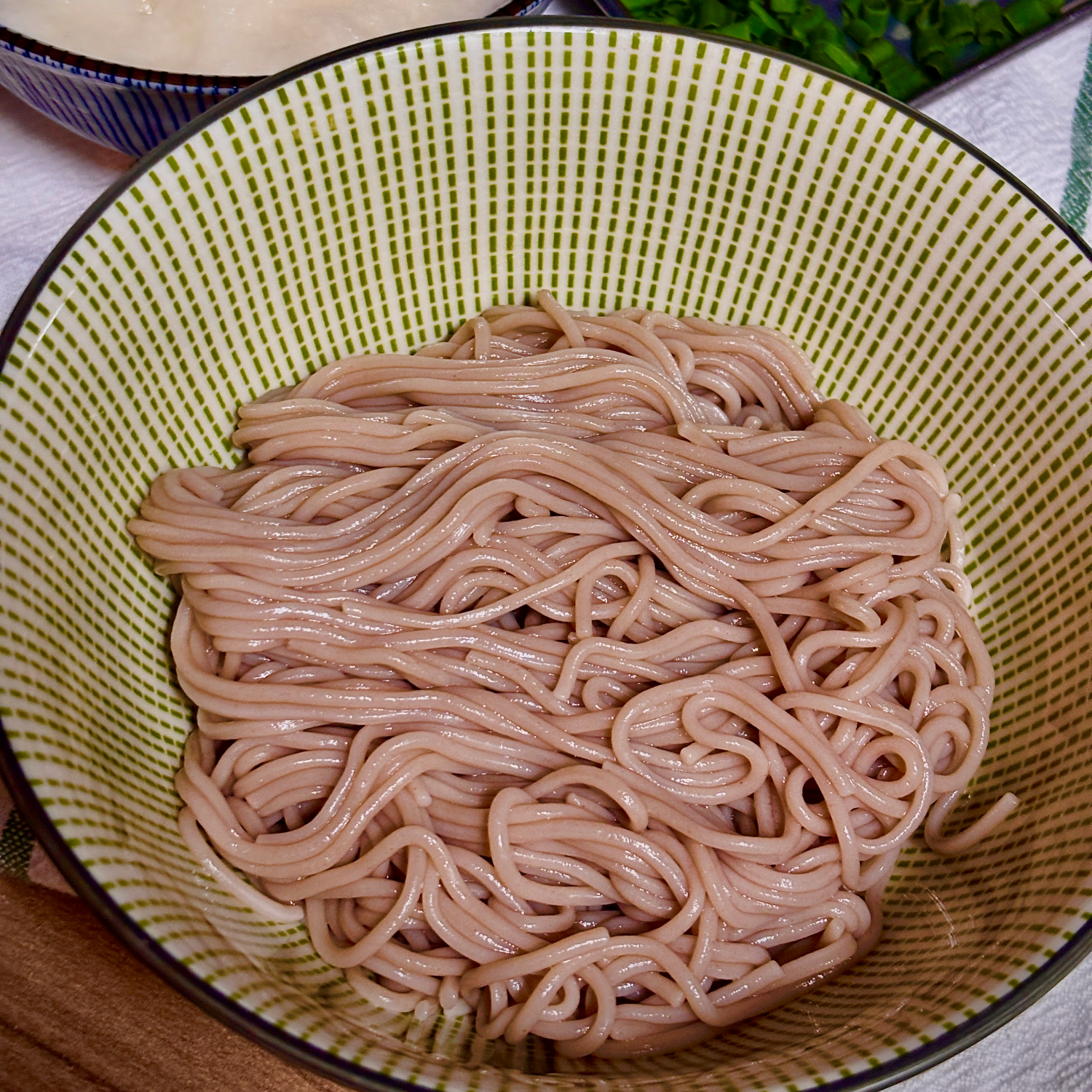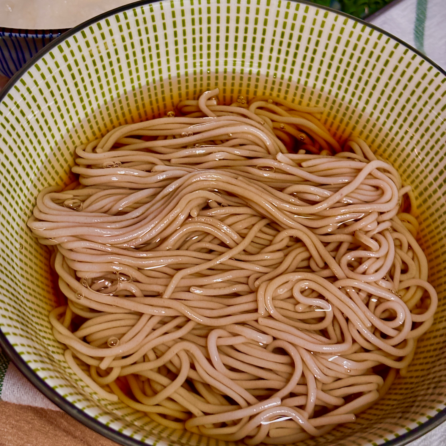 5.메밀면(공산품)을 준비합니다. 끓는 물도 함께 준비합시다.