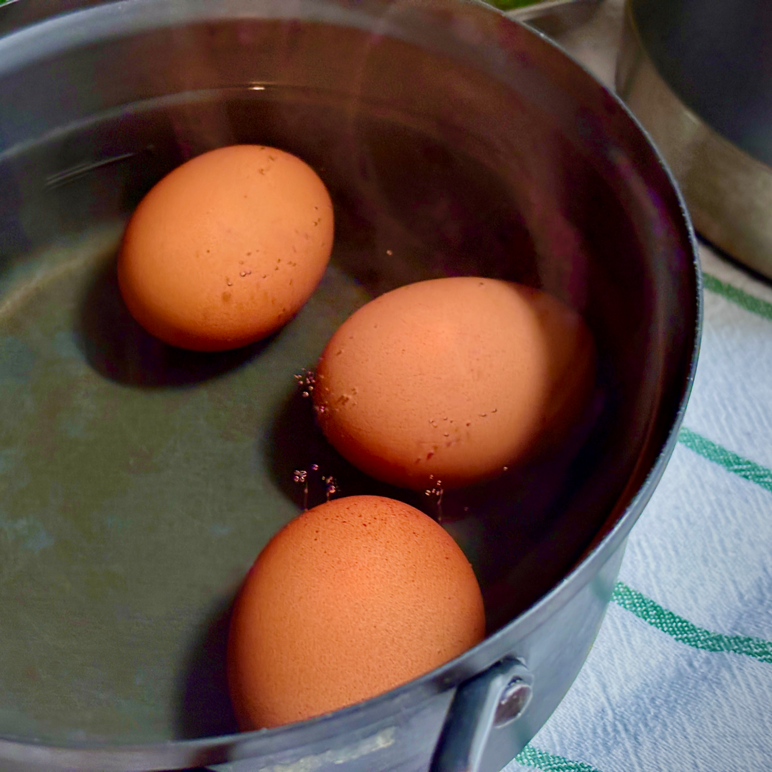 가가나 알(계란)을 펄펄 끓인 물에 20~25분 간 넣고 저어줍니다. (서로 다른 냄비에 조리 하였음)