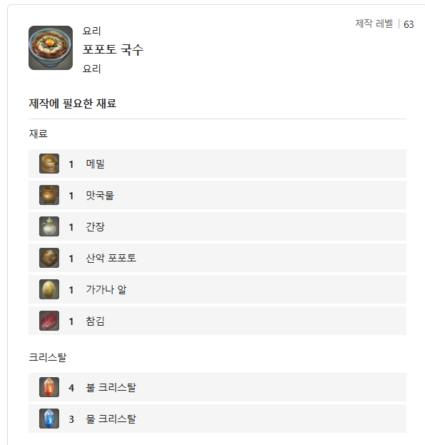 * 실제 재료목록과 공정에는 해당하는 맛국물이 파판14 인게임 내 재료 목록에는 없지만,