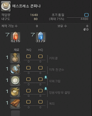 일반적인 제작고수라면 커피를 갈아서 내리고, 사워크림을 만들었겠지만 저는 장터파밍을 해줍니다.