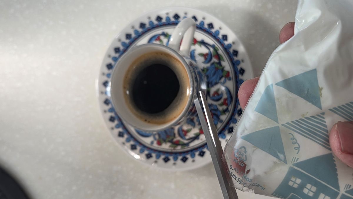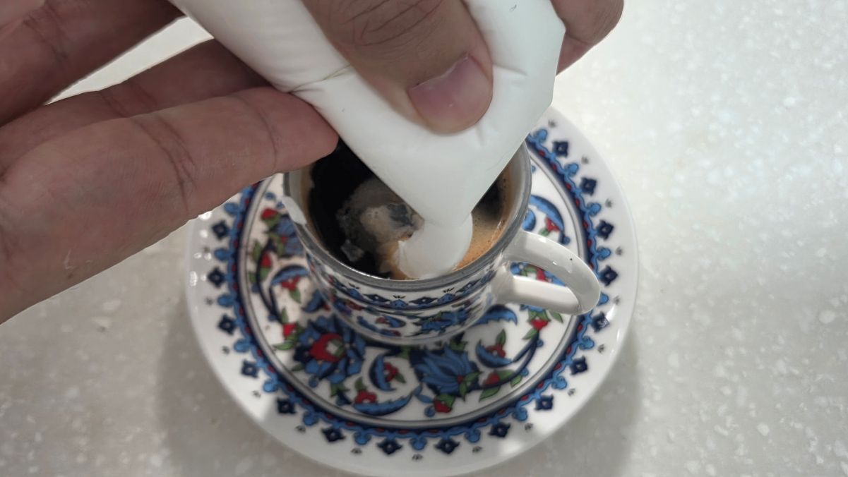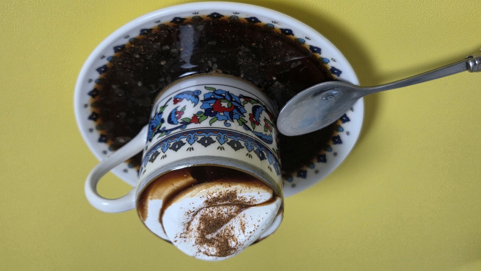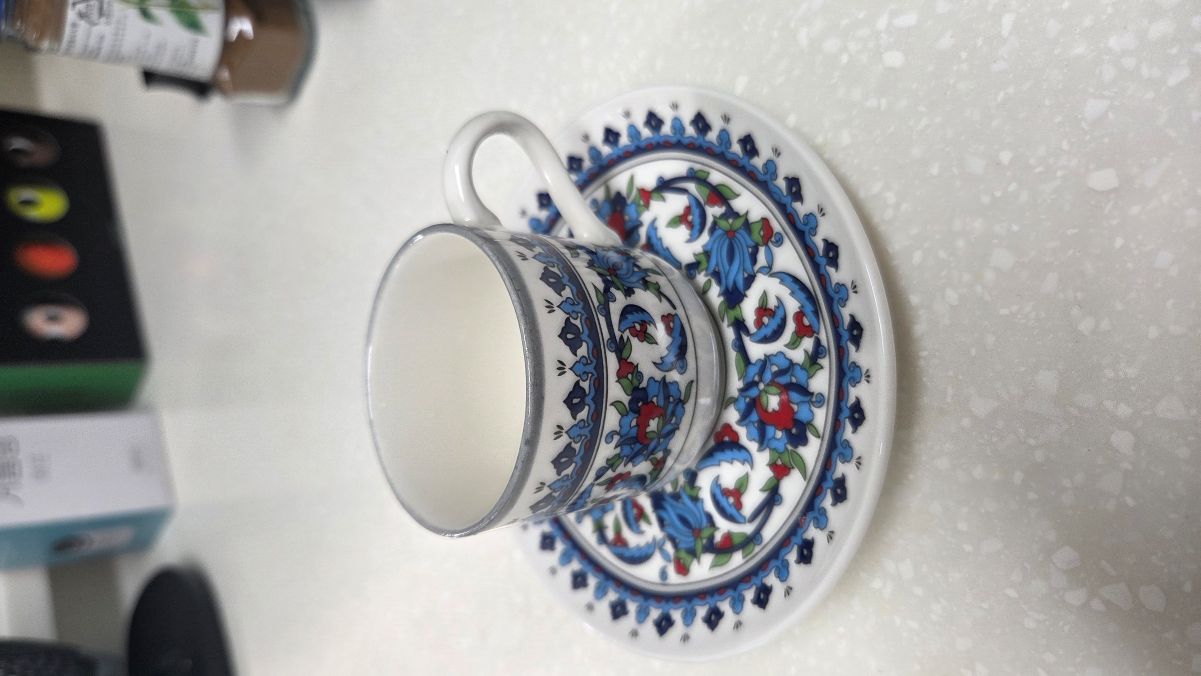 먼저 예쁜 에스프레소 잔을 준비합니다. 하얗고 깔끔한 잔이였으면 좋겠지만, 있는 에스프레소 잔은 화려하고 아름다운 선물받은 잔밖에 없군요.