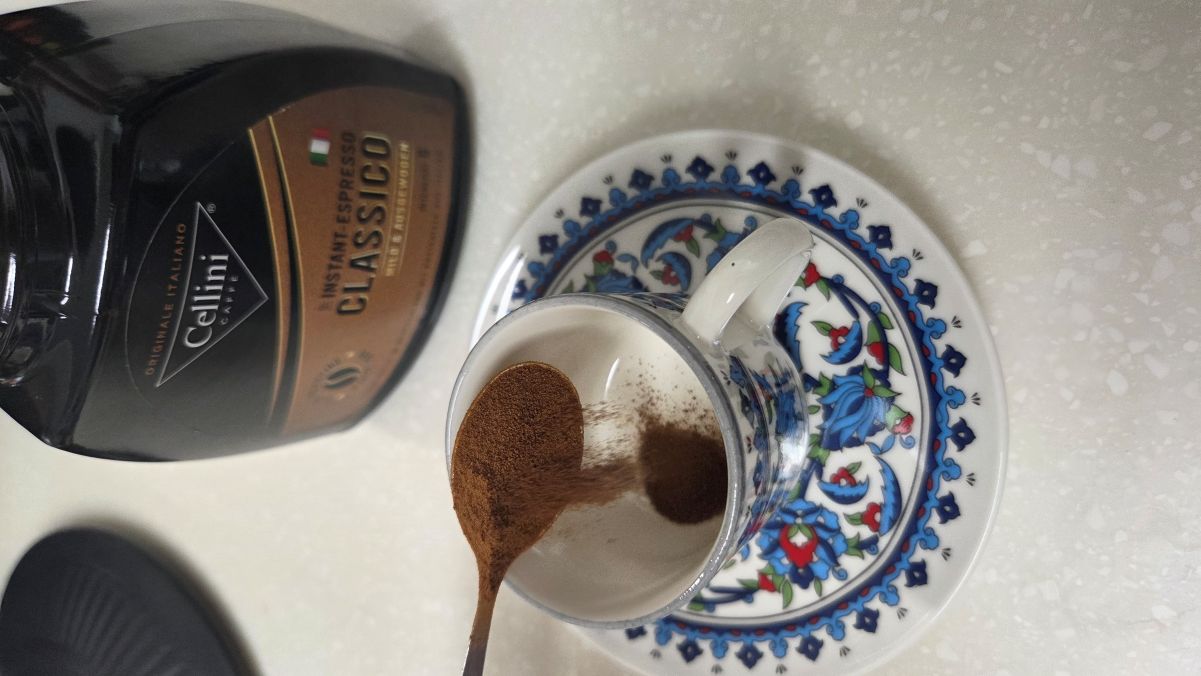 다음으로 (대기업의 머신에서 갈려나와 이탈리안 정통 레시피로 추출되고 얼려서 분쇄된) 커피를 컵에 담아줍니다. 에스프레소 답게 두스푼 플러스 반스푼입니다. 진할수록 맛있으니까요.